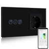 Bseed Normal Socket with Smart Alexa Roller Shutter Switch, WiFi Roller Shutter Switch with Socket, Compatible with Alexa, Google Home, Smart Blind Switch, Schuko Socket, Black (Zero Conductor Required)