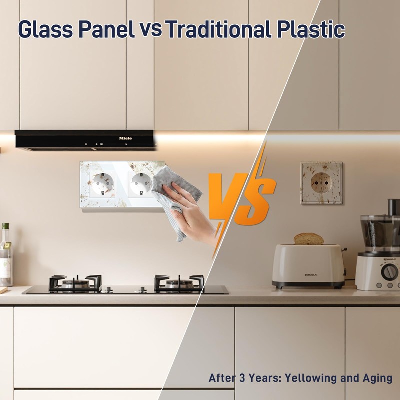 - Good quality: BSEED socket is made of flame-retardant ABS and waterproof touch panel made of hardened crystal.
