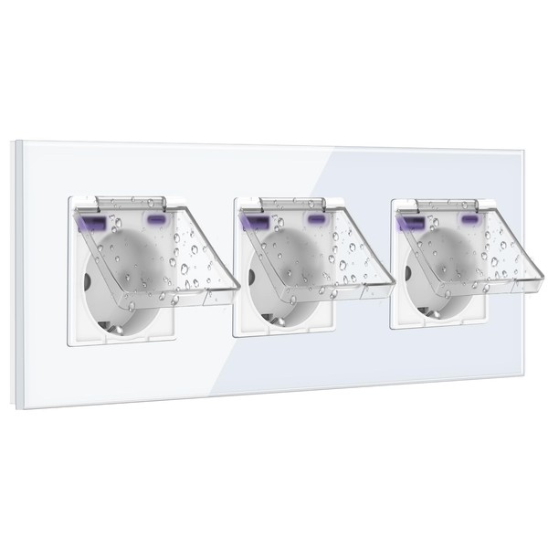 BSEED Schuko Socket 20 W Quick Charger with Waterproof Cover, Triple Socket Flush-Mounted with USB C, Socket Cover 16 Amp for Wet Rooms, Outdoor and Indoor Use, Triple White