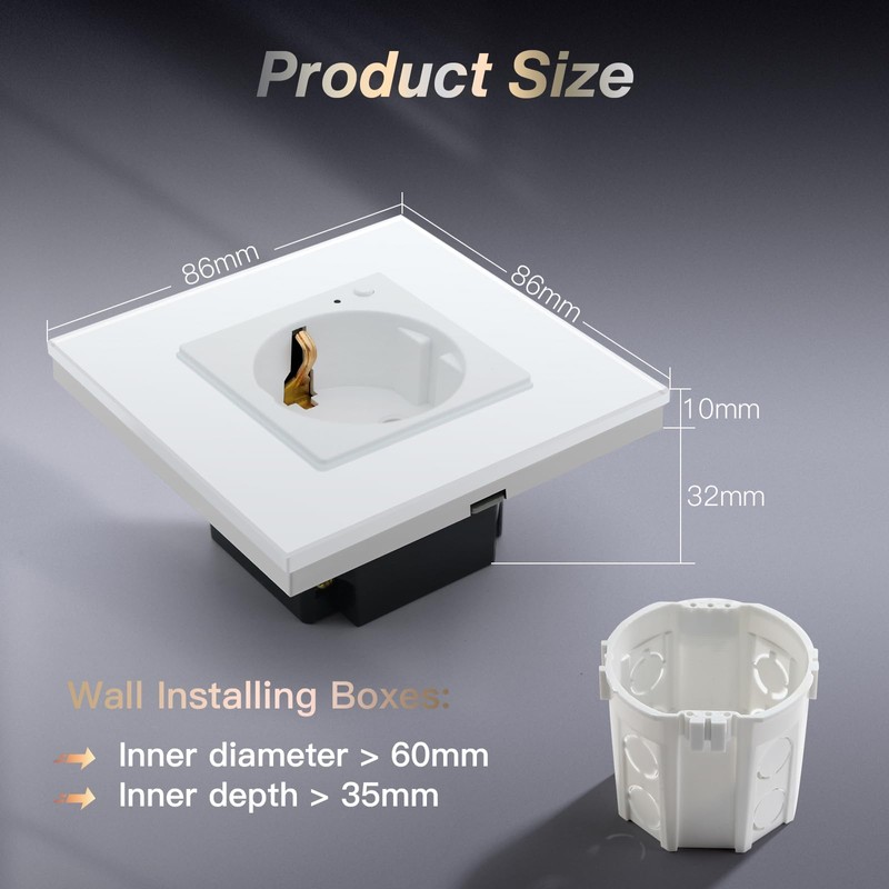 BSEED Schuko Wifi Socket 16A, Smart Alexa Glass Socket, 1 Pack, 1-Way, White, 86 mm, Flush Mounted, Installation, App Control Works with Alexa/Google Home, DIY, Free Spin, Only 2.4 GHz