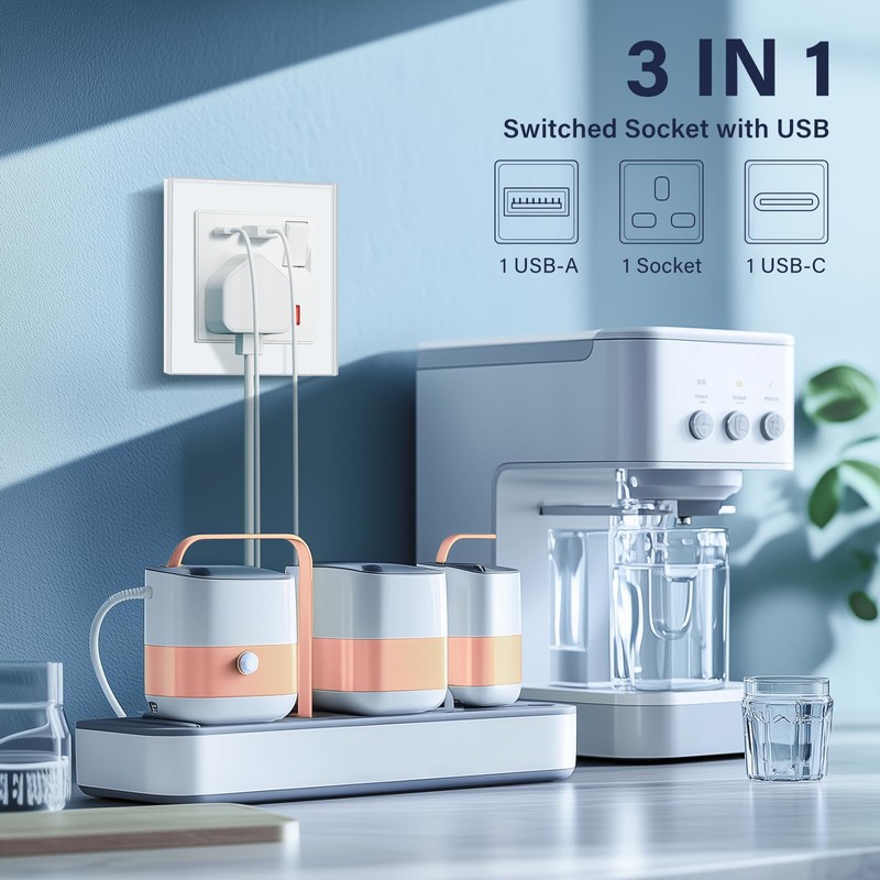 - Integrated Charging Solution: Combining a UK standard single switched power plug wall socket with USB A and USB C ports, it effortlessly handles both modern electronic devices and traditional appliances.