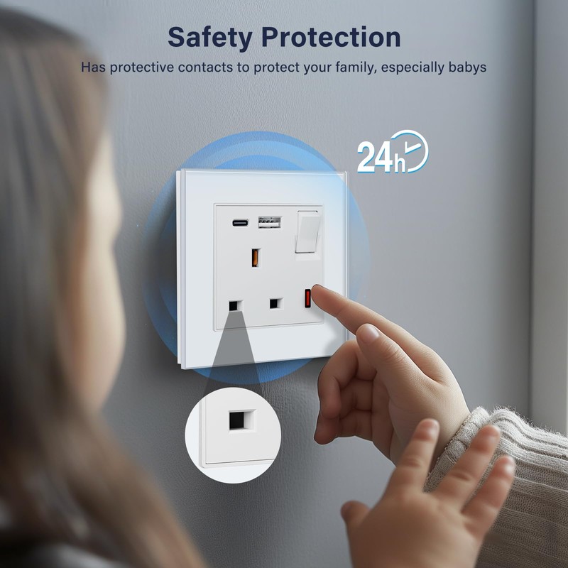- Enhanced Safety Protection: Switched power socket and built-in safe gate provide multiple layers of safety features. This socket places emphasis on protecting family members from electrical hazards, particularly for households with children.