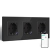 BSEED Wlan Schuko Multiple Socket with USB C 20 W Quick Charger, Smart WiFi 3 Socket Flush-Mounted for Alexa/Google Home, Electricity Meter for Socket with Smart Life/Tuya App, 3 Compartments, 228 mm,