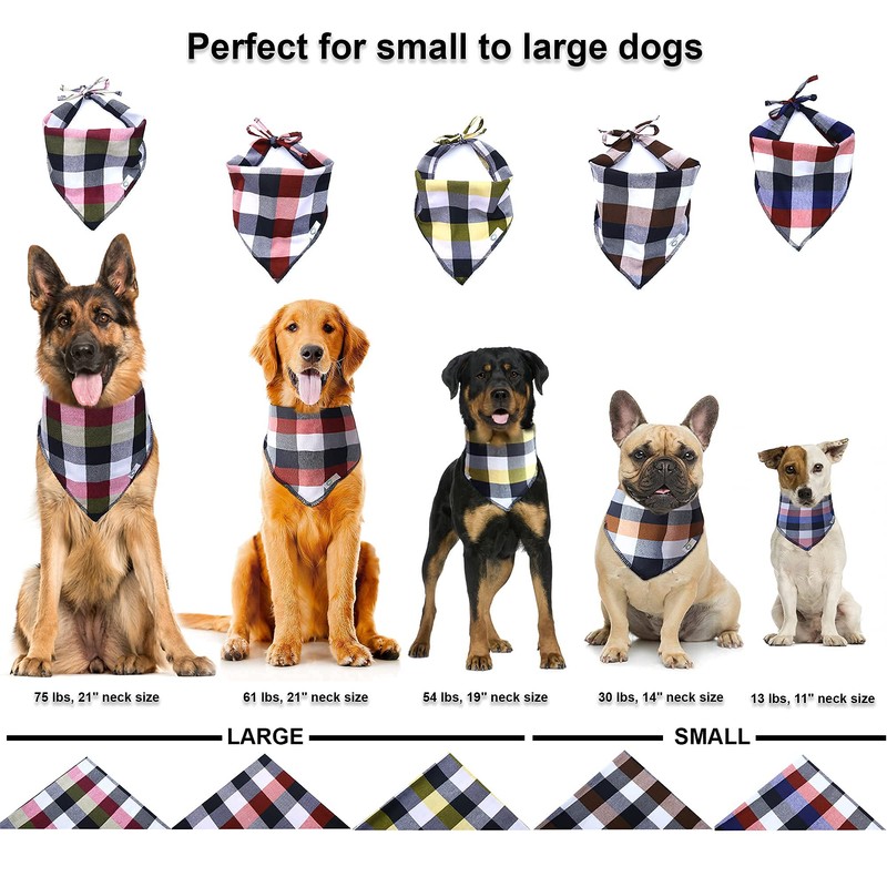 - Eye-Catching Design That Stands Out – Show everyone how special your dog is with your own Dog Plaid Bandana. The stylish shape and Checked design create the Perfect accessory to make your Dogs and Pets stand out. The timeless buffalo check design of our Bandana for dogs will never go out of style, so you can quit spending money on new trends