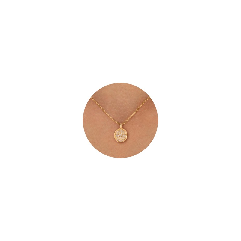 BSGRL Dainty Gold Necklace-14k Gold Plated Cubic Zirconia Paved Hamsa Necklace for Women
