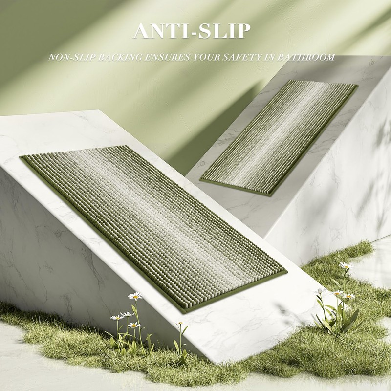 - 【EXTRA ABSORBENT BATHROOM RUG】: The luxury performance chenille microfibers can quickly absorb moisture from your feet when you step out of the bath or shower, and save your floors from dripping water, and dries quickly, making your feet feel the ultimate luxury enjoyment