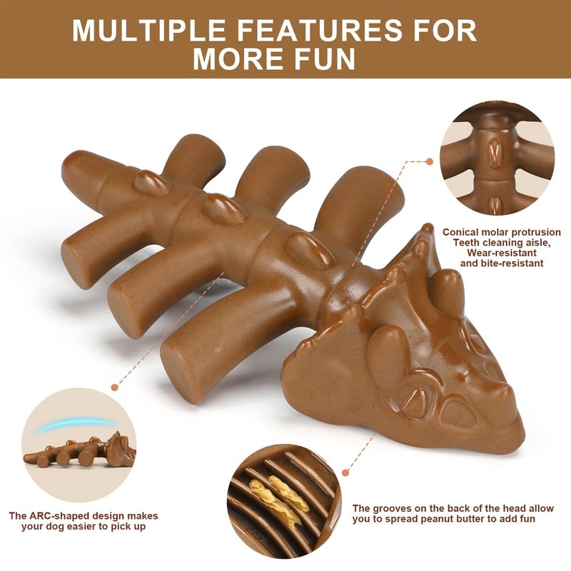 - Unique Design: The durable dog bone toy has triangle dragon shape, which inspires curiosity in dogs, its raised partly stimulates the dog to chew. The groove design on the surface can spread some peanut butter, allowing your dog enjoy the fun of chewing. Easy to pick up and chew, your dog can enjoy chewing or games of fetch.