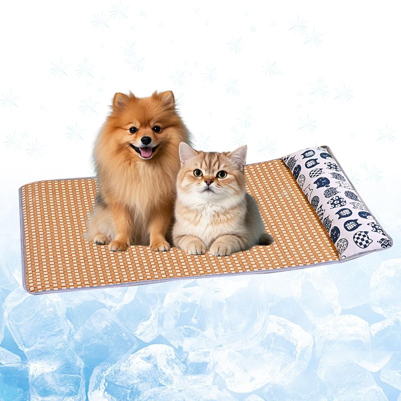 - 【All-Season Value】 Rattan stays cool in summer & insulates from cold floors in winter. Reinforced edges prevent tearing. Pet Cooling Mats includes bonus pillow function (as pictured) – 2-in-1 versatility!