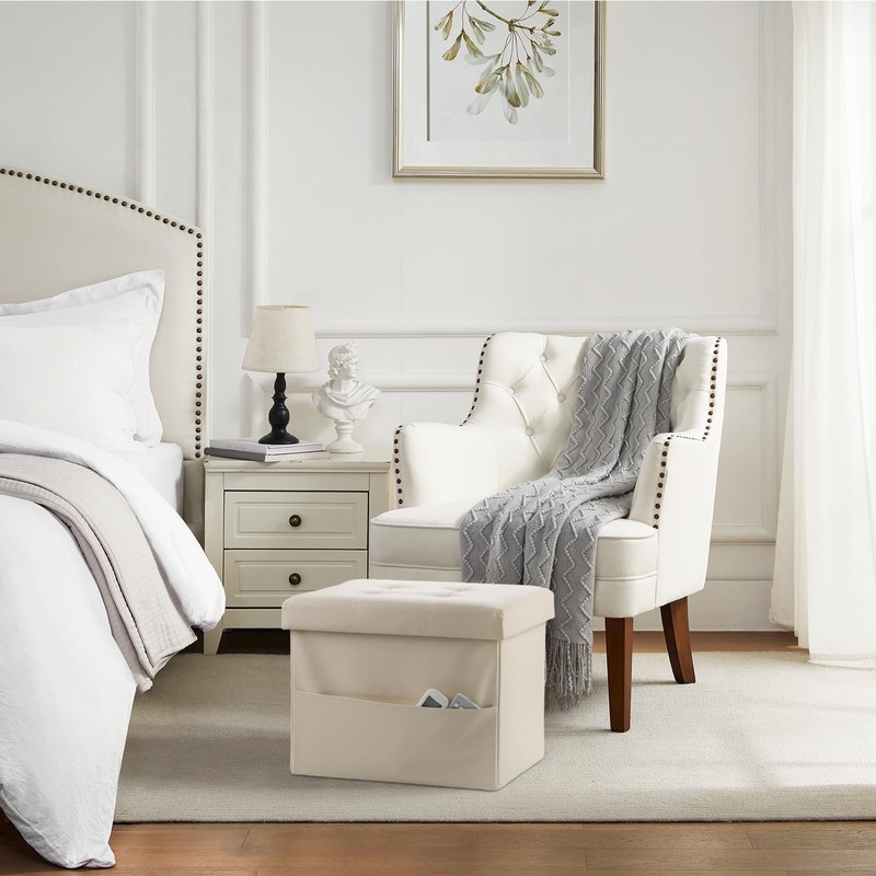 - 【Storage Space & Foldable】Folding footstool provides spacious hidden storage space that you can put it in your bedroom,living room,hallway or utility room to organize books,pillows,clothes,shoes,toys,which helps to keep the room organized in a beautiful way and gives more space by hiding clutter neatly.