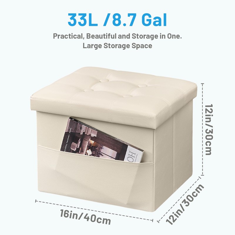 Bsketa folding storage stool have multiple functions of storage box, which can provide extra space and seats for the family; Our Unique faux leather storage ottoman are made of high-quality superior faux leather and MDF board, comfortable and stable, small and light, You can fold it up to save more space when not use; Very suitable for home and office use; super strong, with a maximum load of 330 pounds; can be used as: Storage Chest , extra seat, Foot Rest, Coffee Table and so on