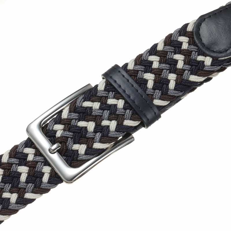 BSLLNEK Elastic Braided Belt, 1 3/8", Woven Stretch Belt for Golf Casual Jeans Shorts Pants (Navy-Grey-Coffee-Beige, Medium (33-36" Waist))