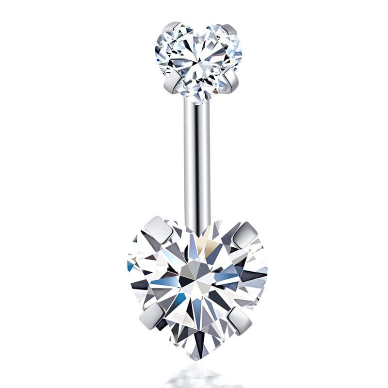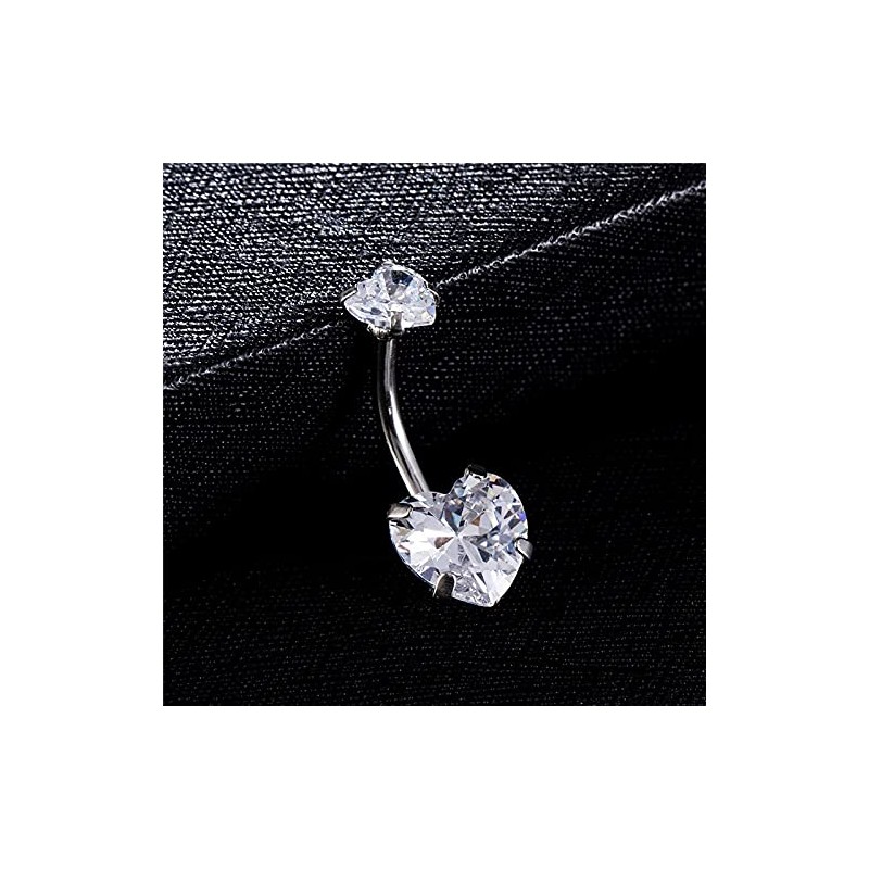 BSLVWG 14G Belly Button Piercing Titanium Steel 8mm Bar Length Piercing Double Heart Belly Button Long Short CZ Balls Titanium Belly Button Piercing Navel Bars Silver Navel Ring Woman Man Jewelry, Titanium Steel, no gemstone
