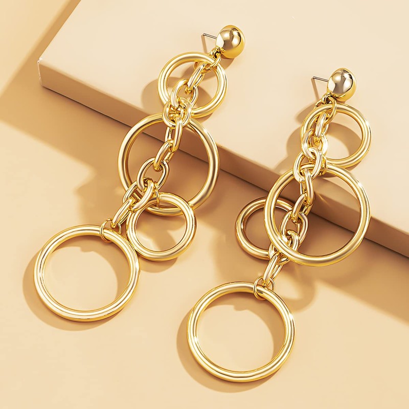 BSLVWG Punk Earrings,Geometric Statement Ring Drop Dangle Earrings Vintage Gold Earrings Lightweight Geometric Exaggerated Earrings Hip Hop Earrings Jewelry for Women and Girls (Gold)