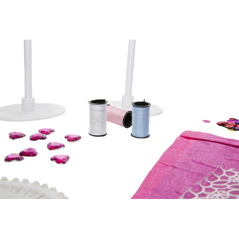 • Contains: 3 plastic mannequins (height: 22 cm), 40 needles in a storage wheel, approx. 80 rhinestones, 6 pieces of fabric (4 measuring 20 cm x 20 cm and 2 with 20 cm x 28 cm), 3 spools of thread (approx. 27 m), 1 needle, 3 patterns, 1 sketchbook, 1 instructions (English language not guaranteed)