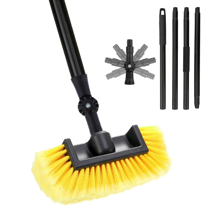 - 【Universal Joint Angle Adaptor for Multi-Angle Cleaning】The car brush comes with a Universal Joint Angle Adaptor, allowing you to adjust the brush head to any angle you need. Whether you're cleaning tight spaces like door edges, side skirts, or wheels, or reaching the top of your vehicle, this adaptor provides 270-degree rotation for ultimate flexibility. The car washing brush with long handle is designed to tackle even the most challenging cleaning tasks, ensuring every inch of your vehicle is thoroughly cleaned. This rv wash brush is perfect for multi-functional use, whether you're washing your car, removing snow, or cleaning outdoor equipment.