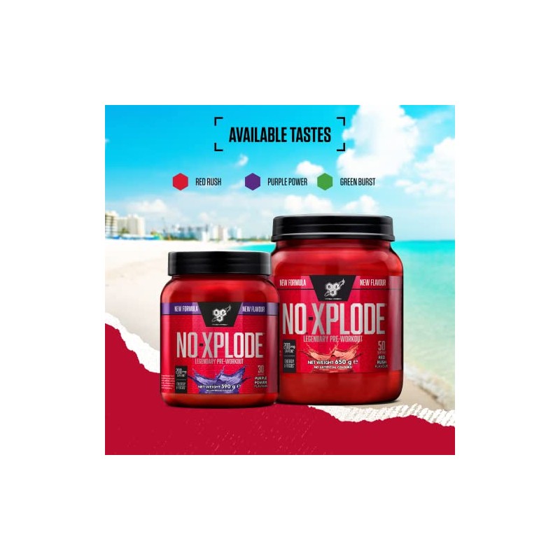 BSN Nutrition N.O.-Xplode Pre Workout Powder Food Supplement, Energy and Focus Booster with Caffeine, Amino Acids, Vitamin C and Zinc, Red Rush Flavour, 30 Servings, 390 g