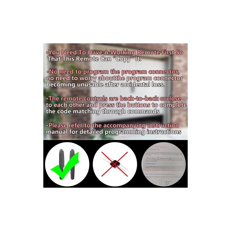 - High Quality: Crafted with high-quality materials, this Remote For Garage Door Opener is built to last. It is durable, resistant to wear and tear, and designed to withstand daily use in various weather conditions.