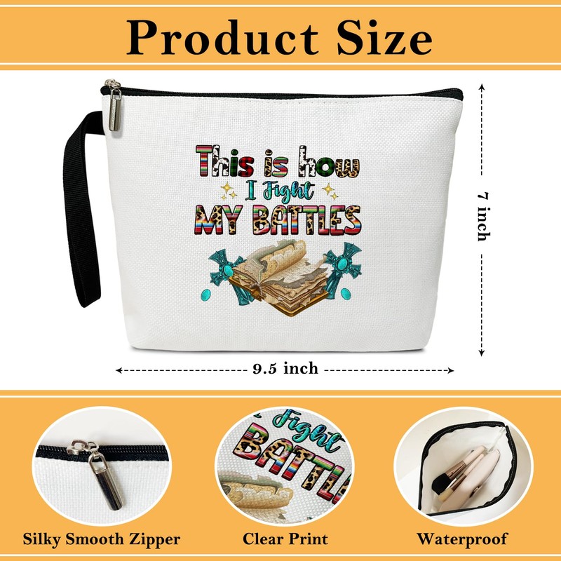 BSNZZIO Christian Cosmetic Bag for Women,Bible Verses Gifts for Friend Mother Coworker Travel Essentials Purse Toiletry Pouch Cosmetic Bag with Zipper(This is How I Fight my battle)/35