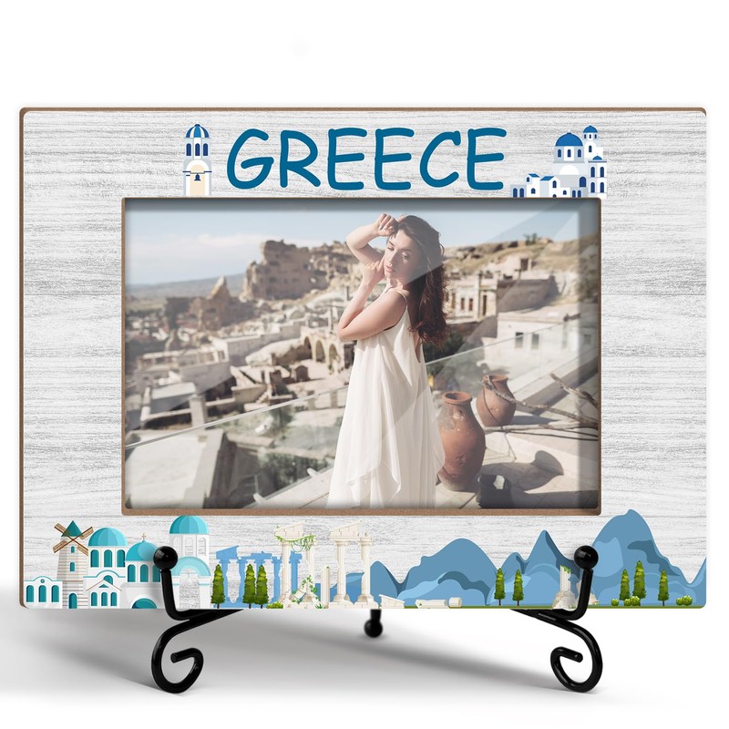 BSNZZIO Greece Travel Photo Frame, Wooden Picture Frame with Stand, Greece Gifts Vacation Gifts for Friends Coworker, Greece Souvenirs Home Office Desk Decor Tabletop Display -TXK10