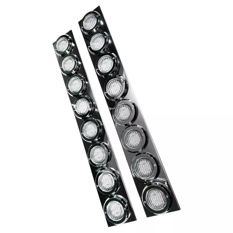 Peterbilt Front Air Cleaner Kit 16 Flat Amber LED Lights & Bezels - Clear Lens