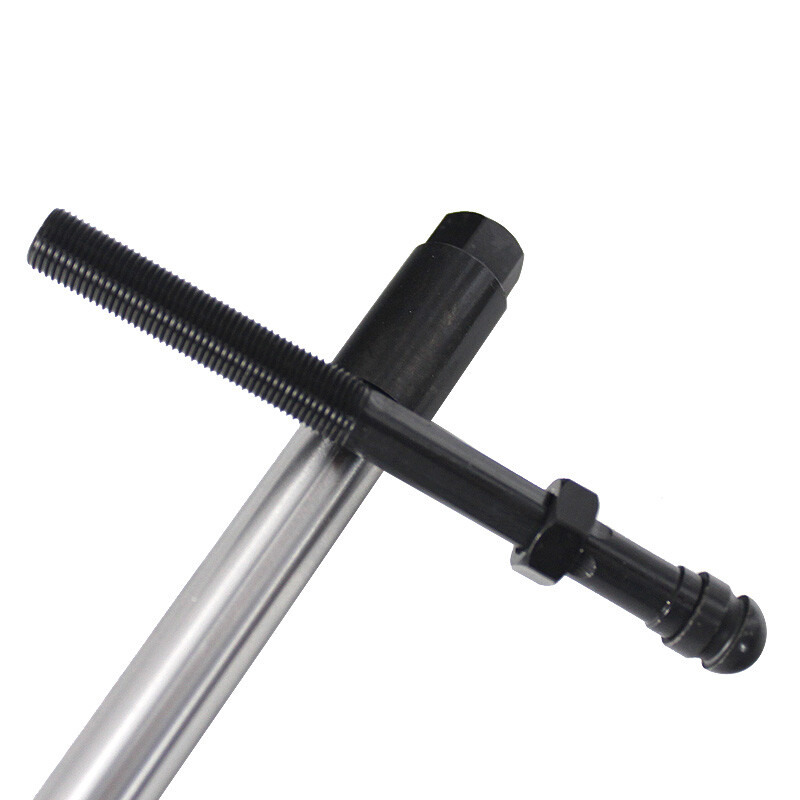 Threaded adjuster screws into the pushrod until the threads disengage and the adjuster simply slides into the pushrod,