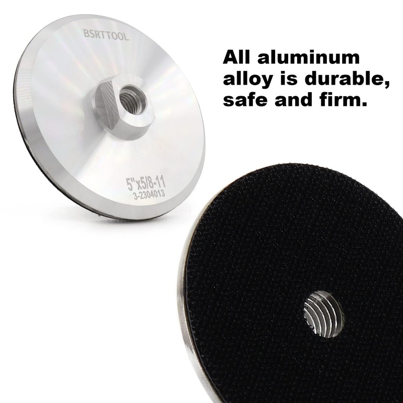BSRTTOOL 5 Inch Aluminum Backer Pad - Hook Loop Backing Pad 5/8"-11 Thread An...