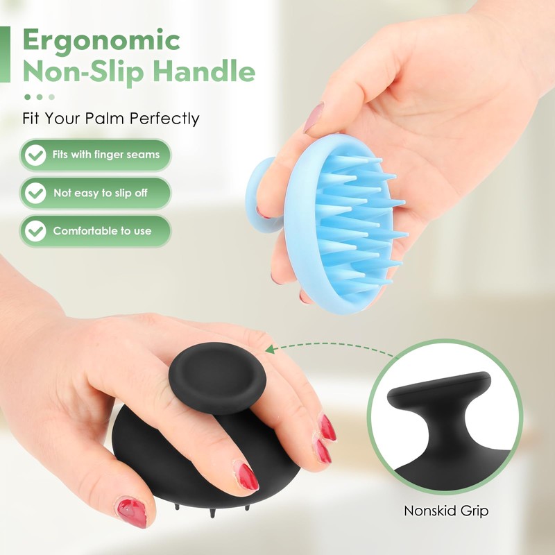 • Scalp scrubber is easy to use and fits comfortably in your hand. Its ergonomic design allows for a firm grip, making it convenient to maneuver and massage your scalp effectively.you can easily clean the scalp, and no need to scratch your scalp with nails., to protect your nail