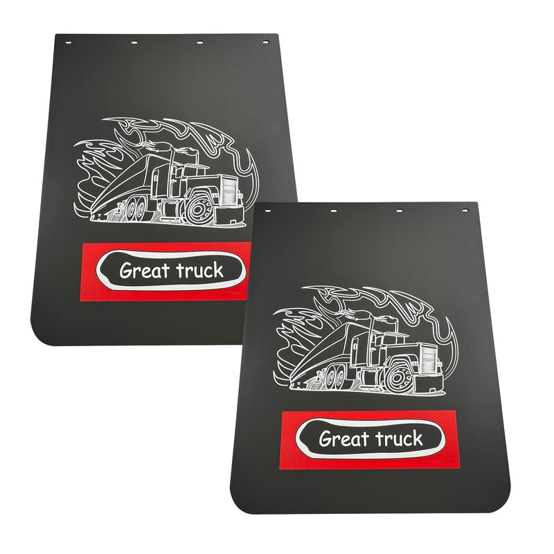 • Package Includes: Total 4PCS (2 x Straight Bar Mud Flap Hanger Bracket Kit; 2 x Mud Flaps.); Protect your truck and road neighbors from sand, rocks, and liquids, while maintain a tide appearance of your truck