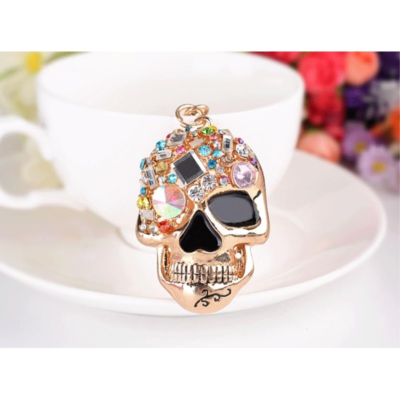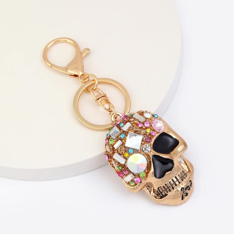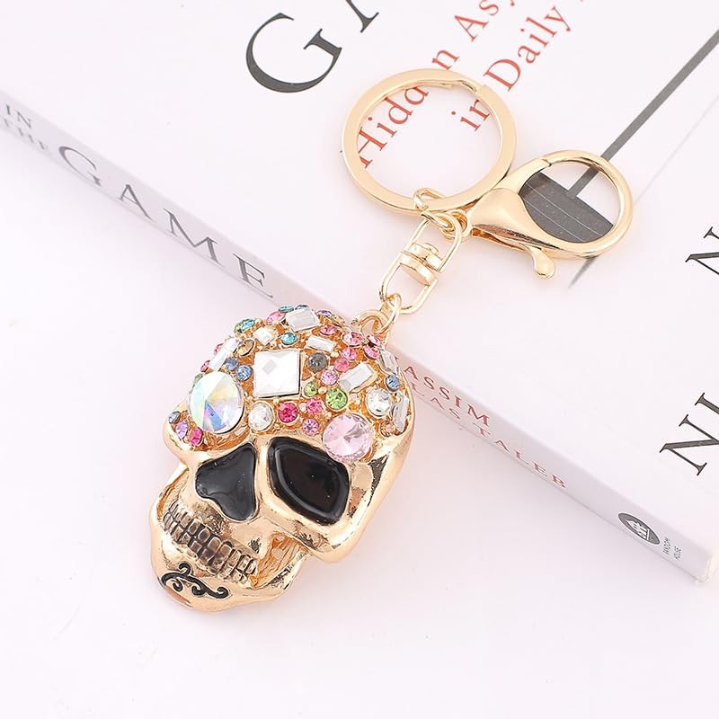bstedyas Cute Crystal Keychain Ocean Animal Keyring Car Bag Accessory Pendant Purse Charm Handbag Decor Ornaments, Gold Skull, Small