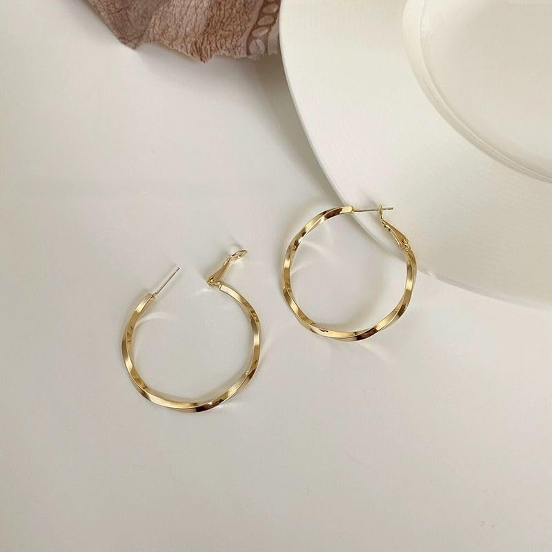 BSTGFTF 14K Gold Plated Twisted Round Hoop Earrings For Women (Gold)