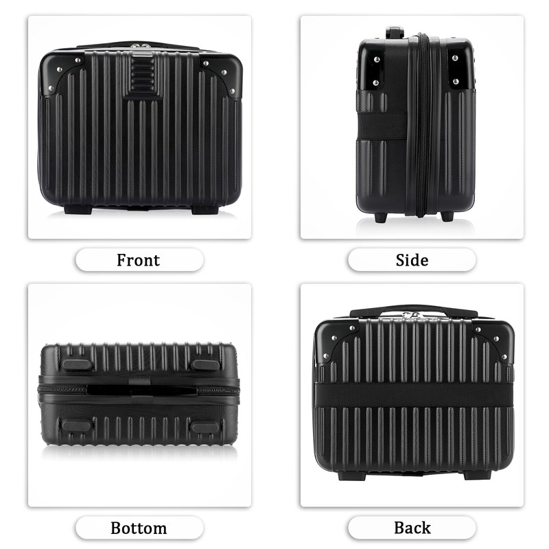 BSTKEY Portable Hard Shell Cosmetic Travel Case, Small Travel Hand Luggage with Elastic Band, Mini ABS Carrying Makeup Case Suitcase, Black