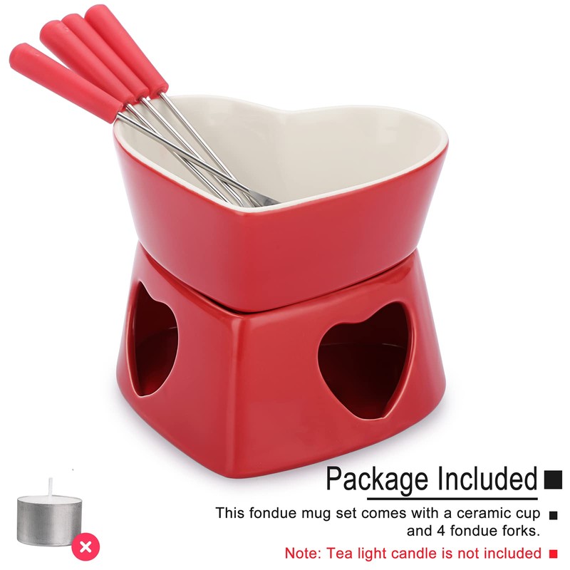 - 🍲PACKAGE INCLUDED - This chocolate fondue pot butter warmer bowl set comes with a ceramic cup,a ceramic fondue base and 4 fondue forks. Note: Tea light candle is not included.