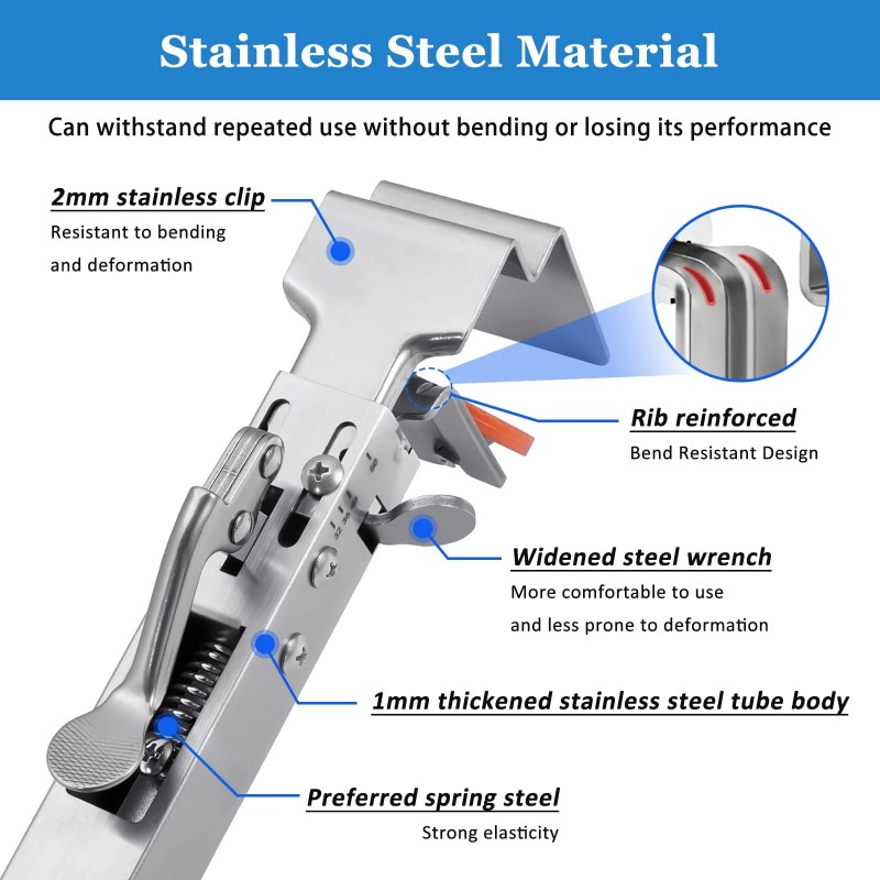 【Sturdy Construction】The drawer fixing clips are made of high quality stainless steel, strengthen 2mm thick clamp head design, reliable performance, resistance to bending and wear for long time use