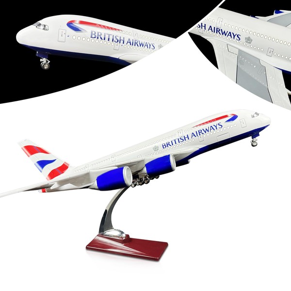 - ✈Model Plane - 1/160 scale model British Airways 380 model plane, length(18in), width(17in), height(7.4in). Scale model reproduction reduction.
