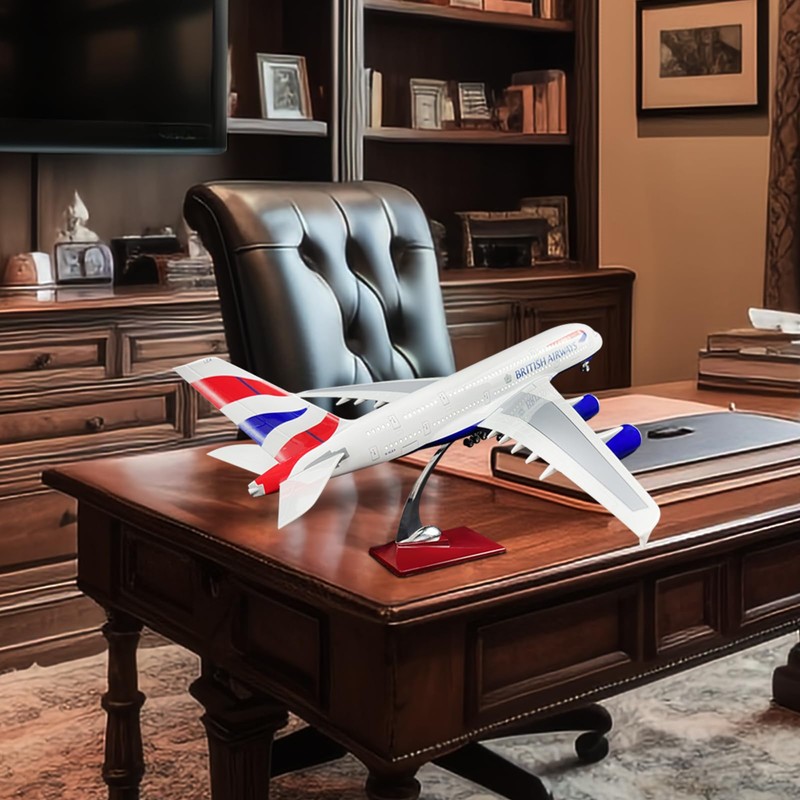 Bswath Large Model Airplane 1:160 British Airway 380 Model Jet Plane Model for Adults with LED Light Gift for Business/Birthday/Christmas