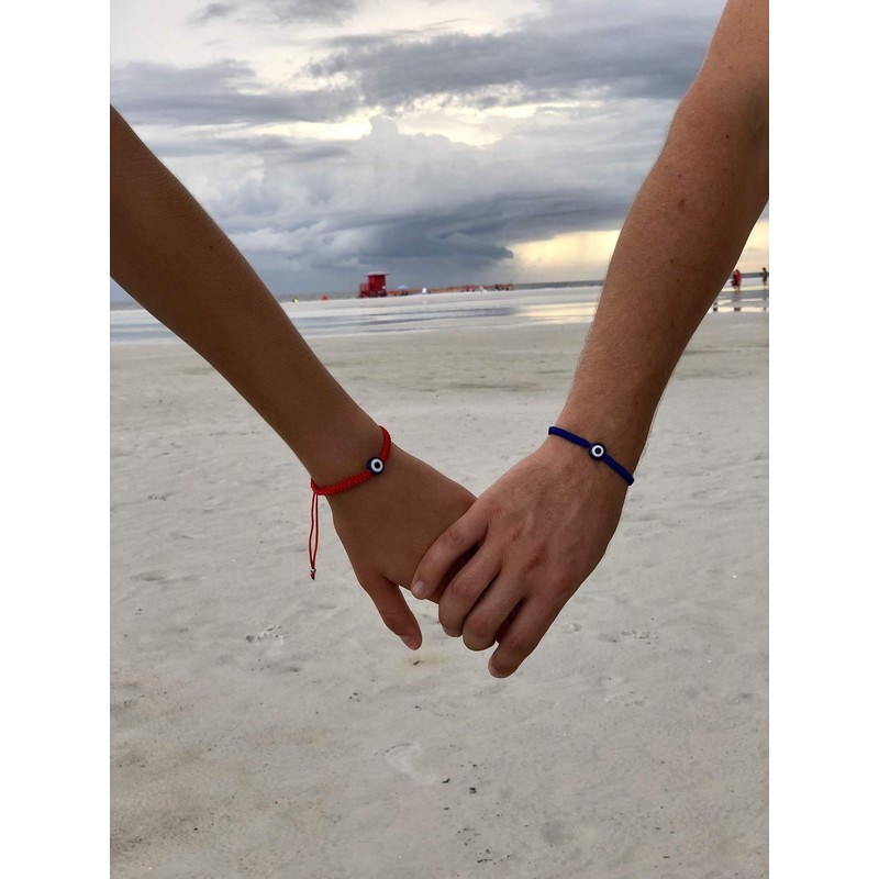 BT Weaved String Contemporary Kabbalah Bracelet with Blue Evil Eye for Protection and Blessing (Red)