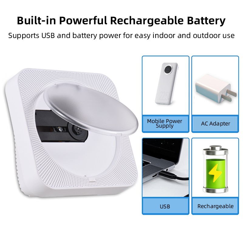 BT5.1 CD Player Portable Music Player FM Radio Desktop CD Runner LED Display 6 Modes A-B Repeat Timer Remote Control