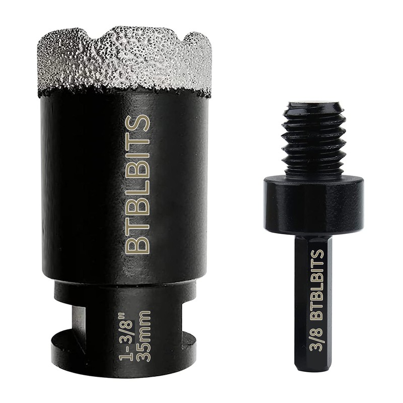 BTBLBITS Dry Diamond Core Drill Bit 1-3/8 Inch (35mm) Tile Diamond Hole Saw for Angle Grinder Porcelain Ceramic Marble Brick Granite Vacuum Brazed with 5/8-11 Thread Plus 3/8 Inch Hex Shank Adapter