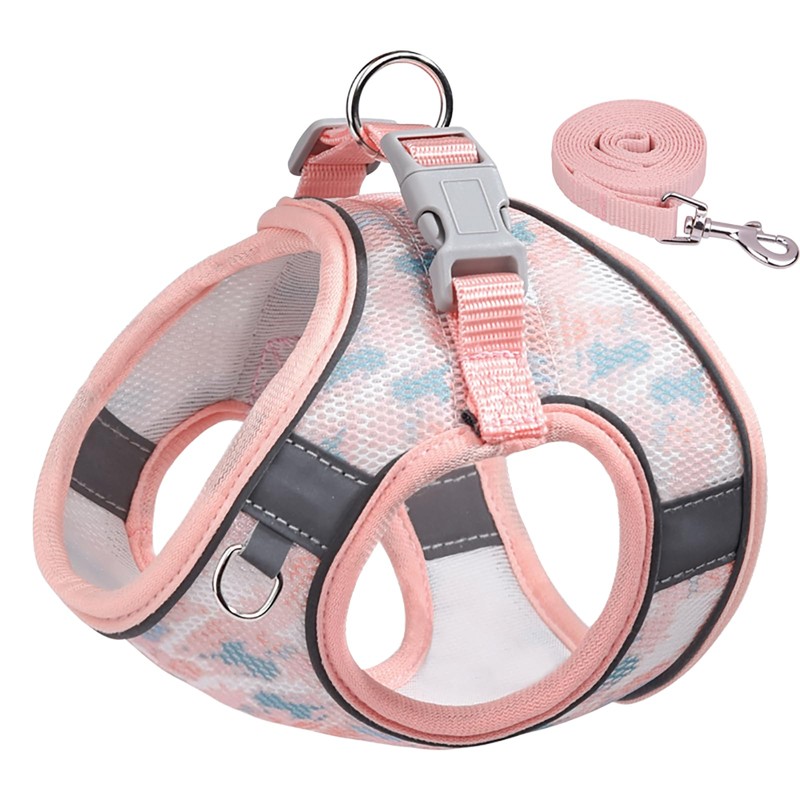 - MESH HARNESS & LEASH SET--The mesh harness attached with a small D ring on the front which designed for ID tag or Led light Poop bags small decorate pendant,the O ring attach for leash.The leash made of nylon,strong and durable,5 ft long make your dog could walk free and the distance also easy to control.Perfect choice for your dogs.