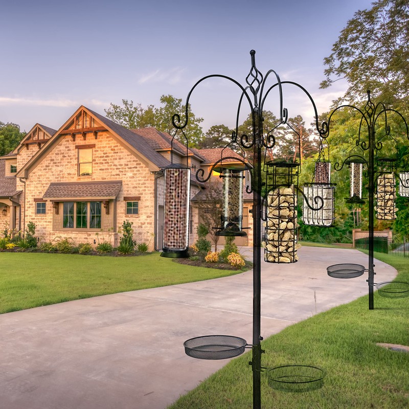 - EFFECTIVE: Available twin-top hooks are excellent for quarry, tube, and nyjer feeders-effective for recruiting smaller birds such as songbirds, woodpeckers, titmice, and juncos. Two additional hooks provide more decorative choices, such as a corn and nut basket for attracting squirrels, woodpeckers, peacocks, starlings, and blackbirds.