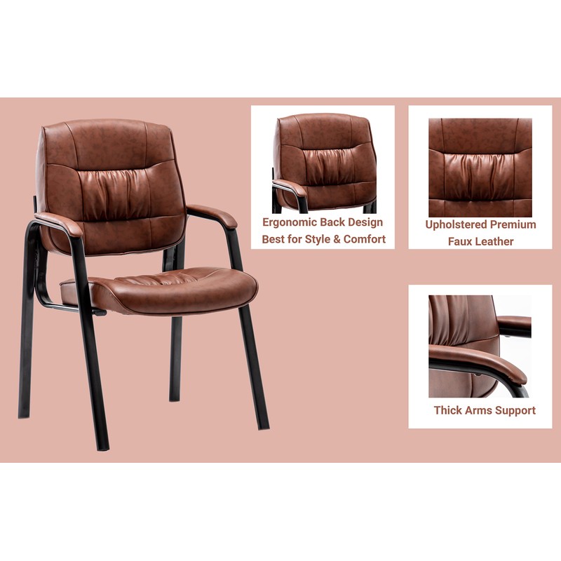 BTEXPERT Brown Leather Office Executive Waiting Room Guest Reception Side Conference Chair