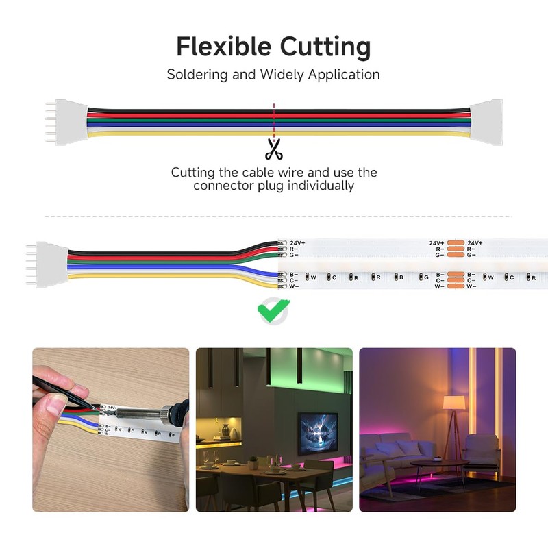 - Flexible Applications. 6 Pin JST Extension Cable Connectors is simple, safe and convenient to connect, it can be directly inserted. It can connect light strips to light strips and also connect controllers to light strips. It can be cut to any desired length for use and No Need Soldering.