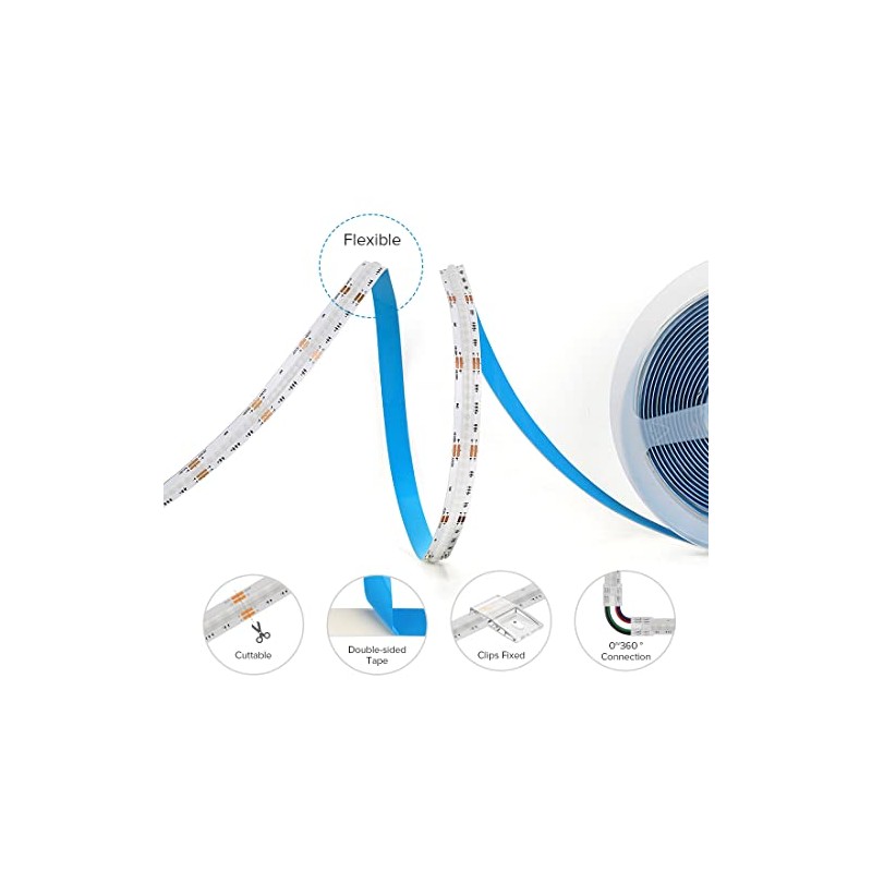 - FCOB RGB 2M 576LEDs/m Streifen, im Vergleich zu den 5050 RGB LED Streifen hat der FCOB RGB LED Streifen keine dunklen Flecken f??r Farbwechsel und ist IP30 nicht wasserdicht. Geringere Leistung, h?here Lichtausbeute, Ra>90 und keine dunklen Flecken, Abstrahlwinkel von 180??, was eine gleichm??igere und hellere Ausleuchtung gew?hrleistet. Bitte beachten Sie: Die Farbreihenfolge der Leuchtbalken ist GRB (nicht RGB), bitte w?hlen Sie beim Anschluss die richtige Farbreihenfolge f??r den Anschluss.