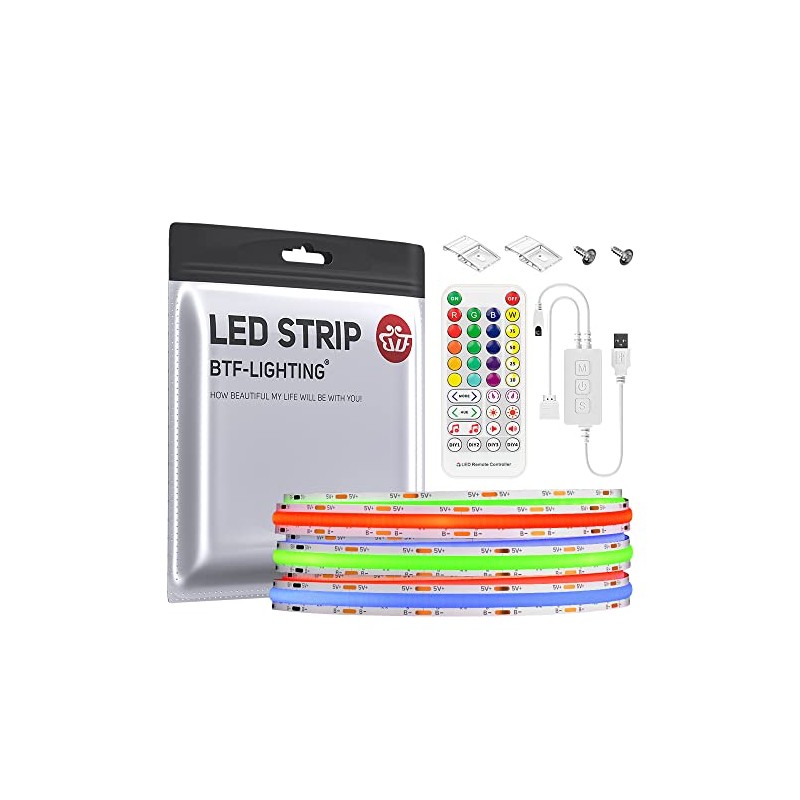 BTF-LIGHTING BTF-LIGHTING FCOB RGB USB LED Strip Kit 2M 576LEDs/m COB FOB RGB DC5V IP30 Non-Waterproof LED Strip with SP613E-USB Controller and 2pc mounting clips and screws for DIY home decoration