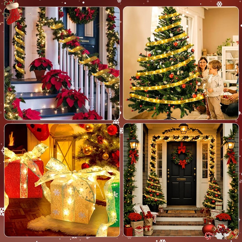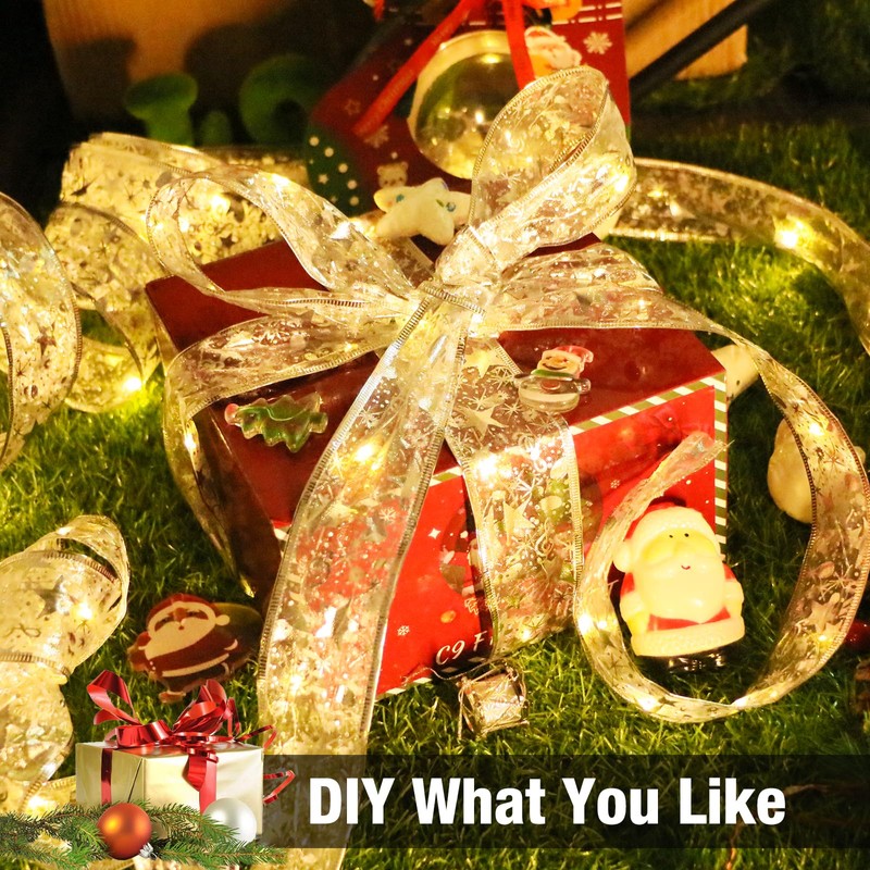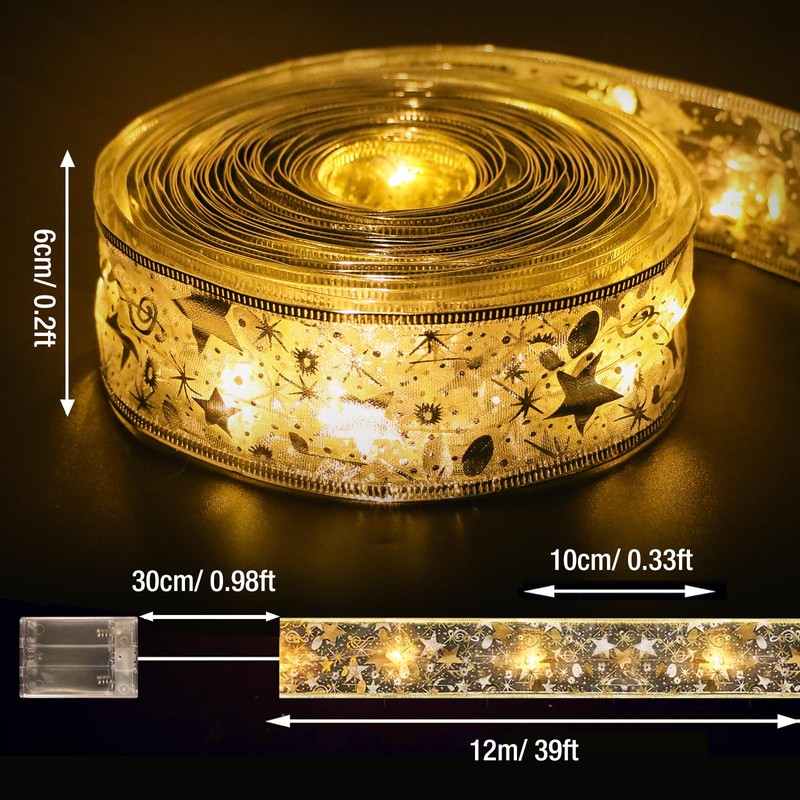 - 12M 120 Christmas Tree Ribbon Fairy Lights : the Christmas tree lights are 12M long with 120 LED, the lead wire is 30CM long, the filament width is 5CM long, there are a total of 8 modes, which can meet your needs in different occasions