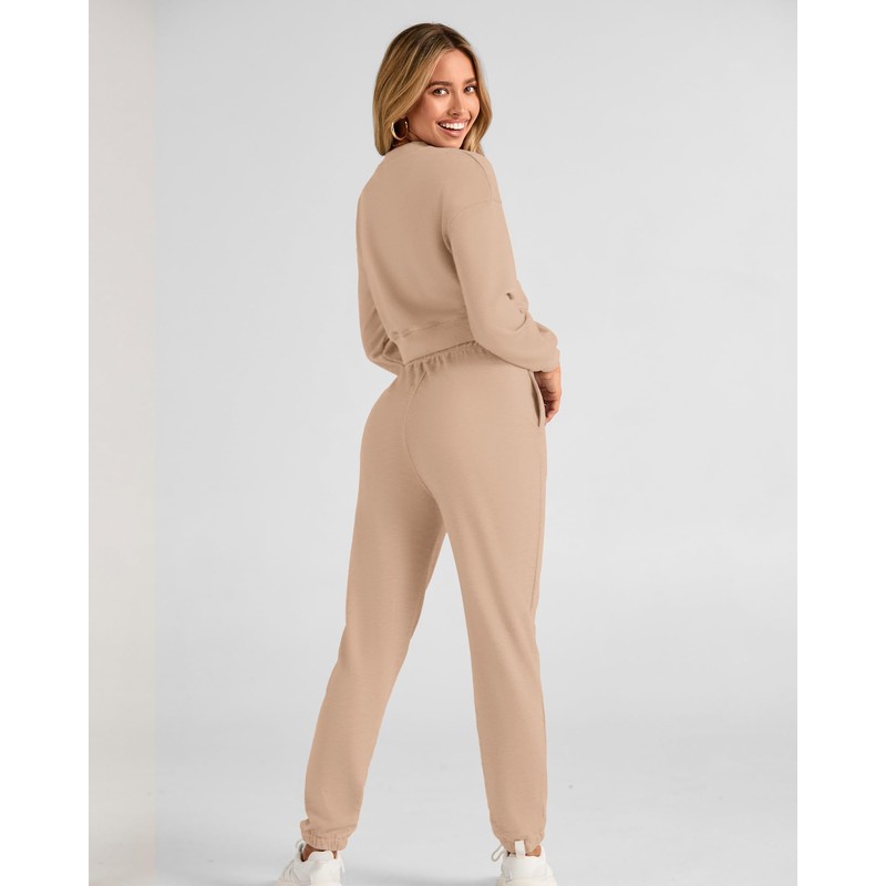 - FEATURE: Sweatsuits Women 2 Piece Outfit / Sweatpants Set For Women / Crew Neck / Long Sleeve / Ribbed Cuff / Drawstring Elastic Waist / Crop Top Pullover / With Pockets