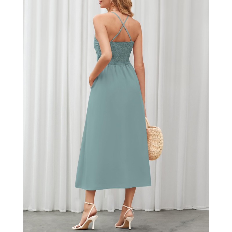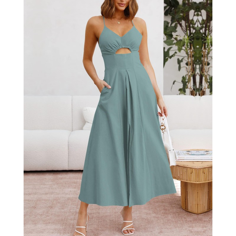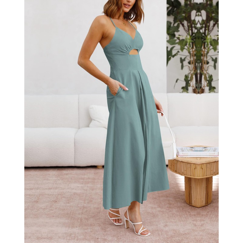 - FEATURE: Summer Dresses For Women 2025 / Maxi Dress For Women / Beach Dresses For Women / Casual Dresses For Women / Sleeveless / Adjustable Spaghetti Strap / Deep V Neck / Cutout Front / Wide Waistband / Backless / Shirred Back Waist / High Waist / Pleated Detail / Front High Split / Hidden Pockets / Flowy A-Line Shape / Only Light Color Lined