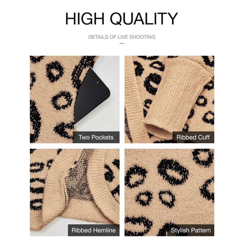 BTFBM Women Fashion Leopard Print Long Sleeve Sweater Cardigan Loose Knit Open Front Fall Spring Outwear Coats(Leopard Khaki, Large)