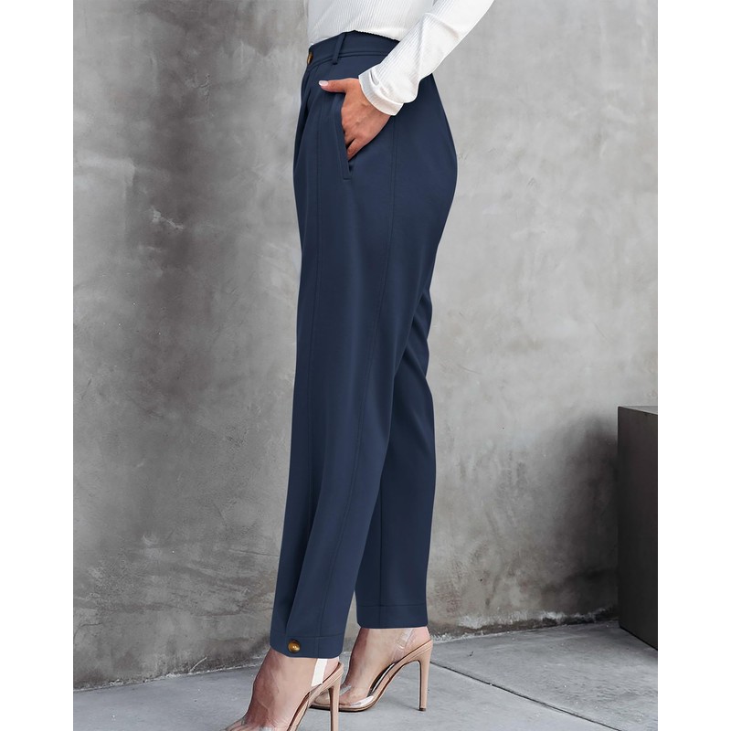 - DESIGN: With Its Fold Pleated Detailing, Side Slanted Pockets, And Subtle Decorative Button Design On The Straight Leg, These High Waist Pants Are The Perfect Addition To Your Wardrobe