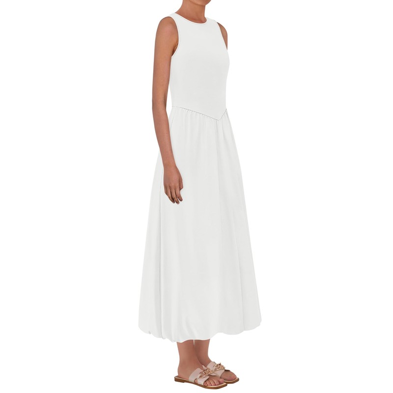 BTFBM Women's 2025 Summer Casual Sleeveless Midi Dress Patchwork Knit Tank Bubble Long Flowy Beach Maxi Sundress Pockets(White, X-Large)